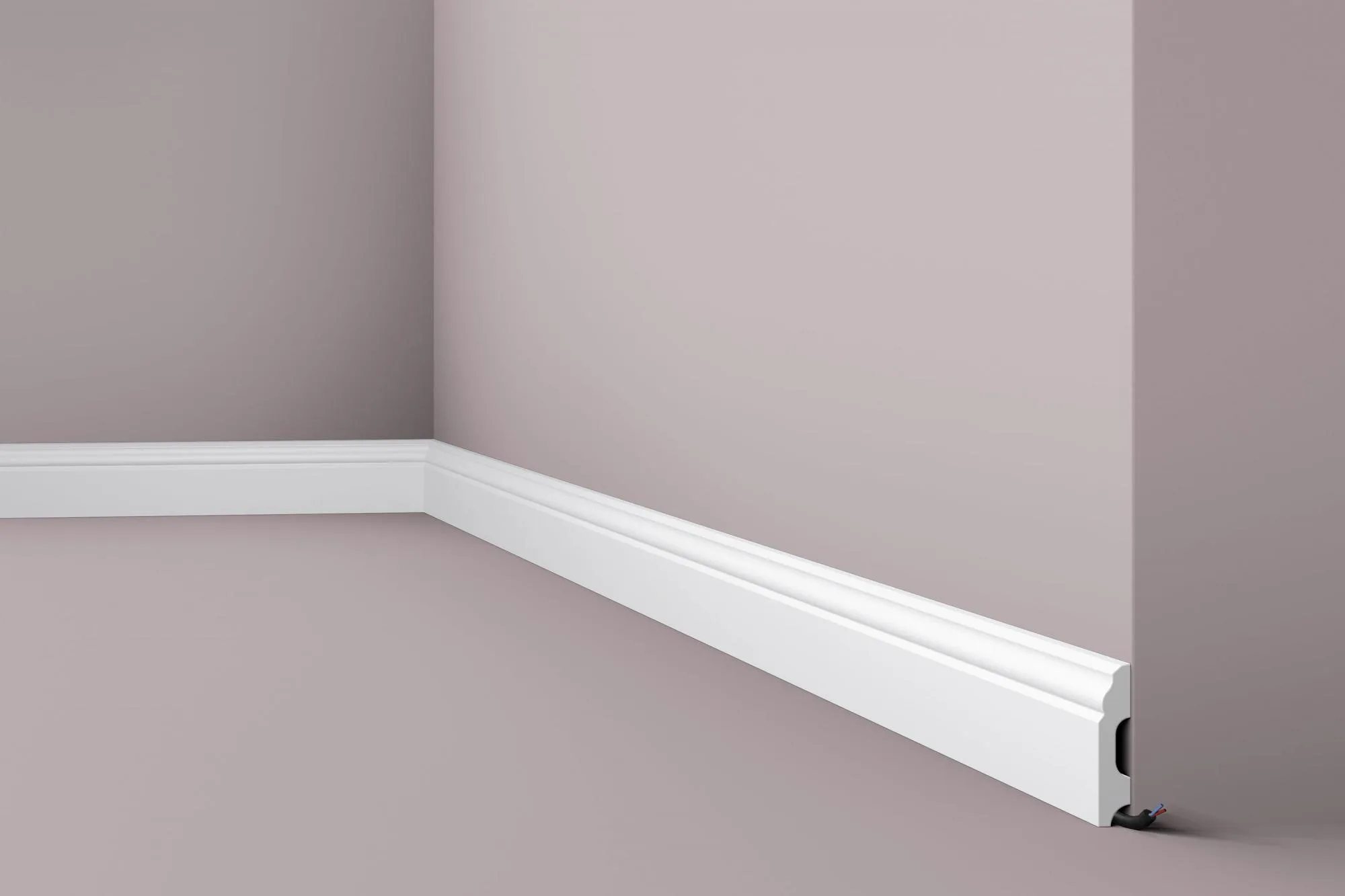Напольный плинтус FB1 из дюрополимера, бельгийского производителя nmc. Плинтус про грунтован имеет идеальную поверхность для окрашивания красками не содержащие растворитель, легко монтируется.