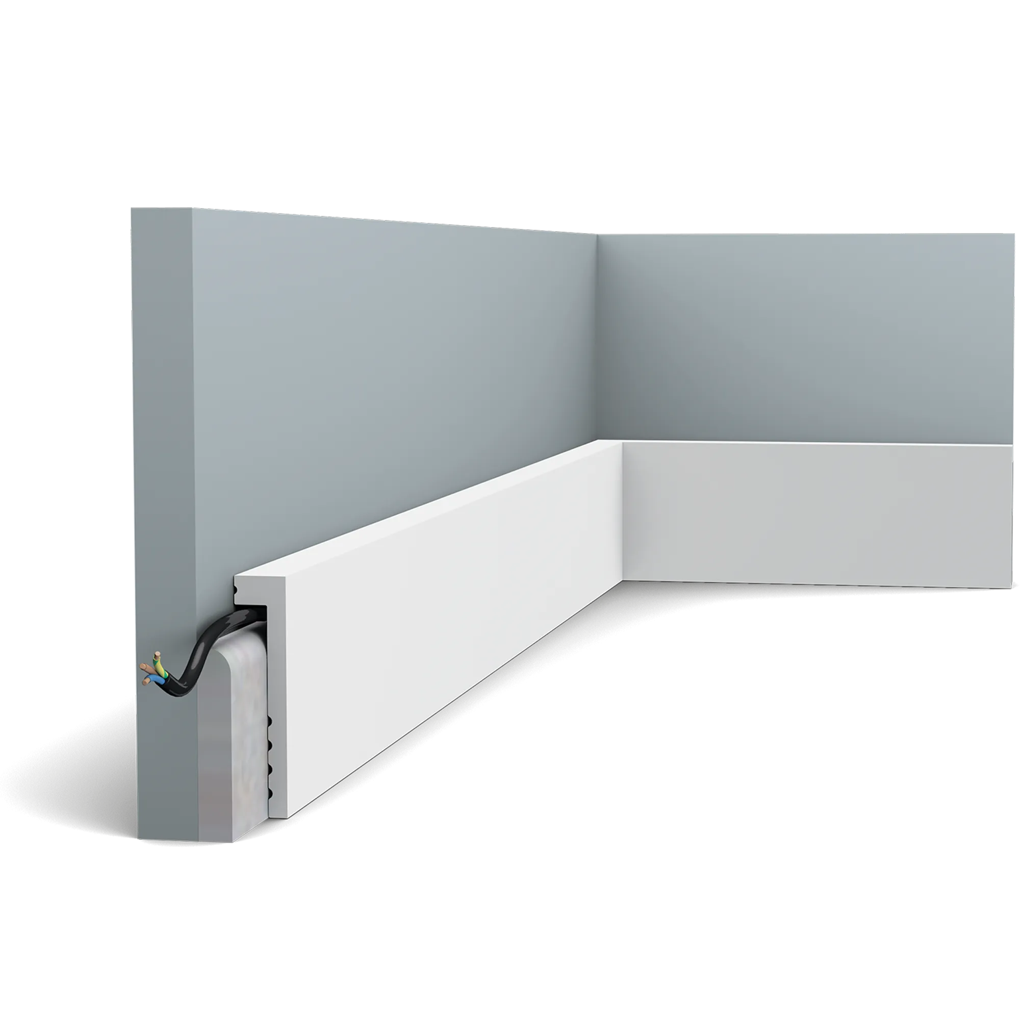Плинтус водостойкий, легко окрашиваемый перекрывающий плинтус идеально подходит для ремонта. Устанавливается поверх существующего плинтуса (максимальный размер которого 1,4 на 8,8 см). Старые и поврежденные плинтусы, которые трудно удалить, больше не будут помехой Плинтус про грунтован, влагостойкий, устойчивый к термитам, легко монтируется, идеальная поверхность для окрашивания красками не содержащие растворитель. Рекомендуется использовать стыковочный клей для соединительных стыков.