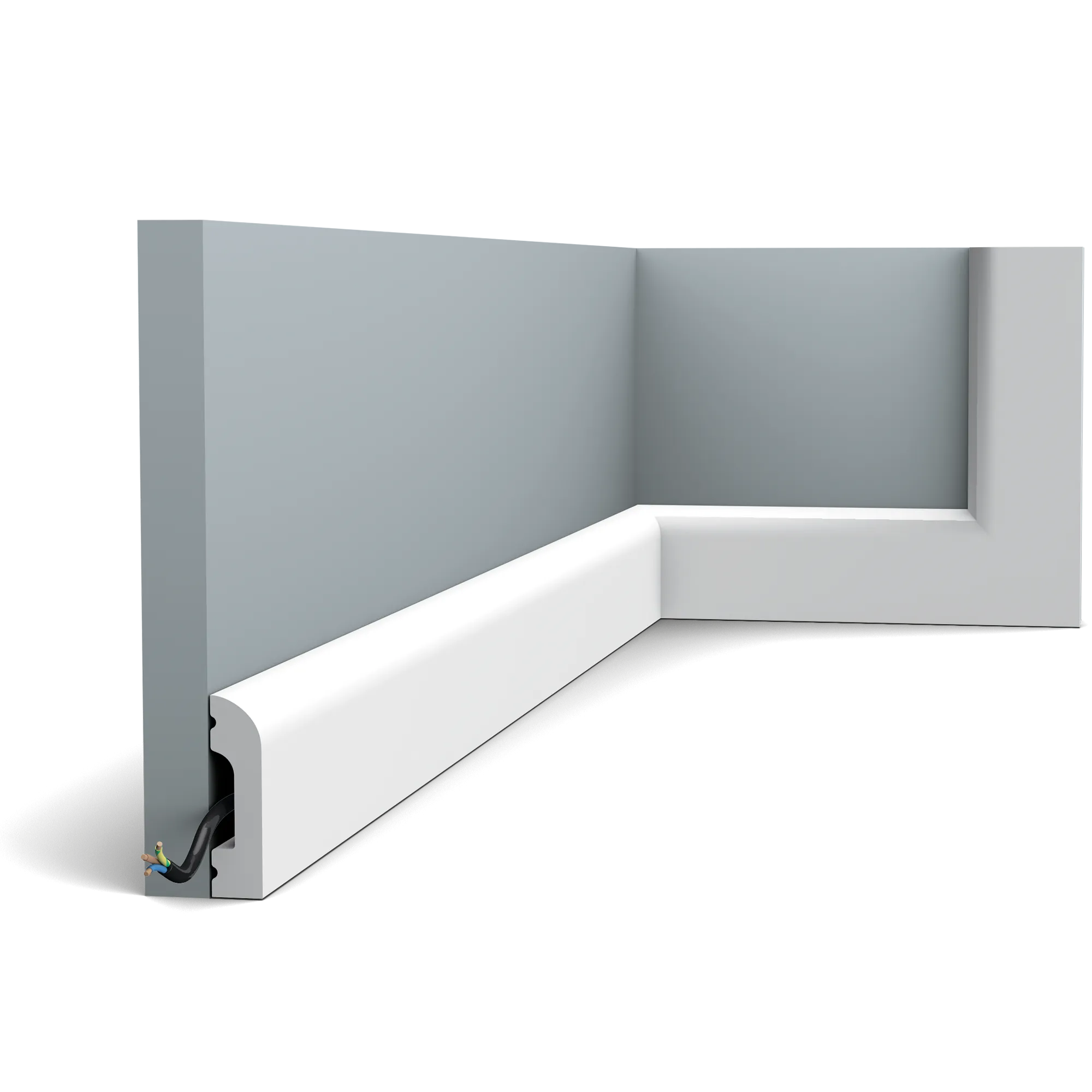 Напольный плинтус SX182 Orac Decor из дюрополимера. Этот многофункциональный плинтус с закругленным верхом предлагает бесконечные возможности для отделки помещения. Плинтус про грунтован, влагостойкий, устойчивый к термитам, легко монтируется, идеальная поверхность для окрашивания красками не содержащие растворитель. Рекомендуется использовать стыковочный клей для соединительных стыков, имеет гибкий аналог.
