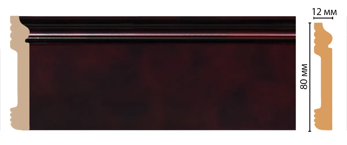 Окрашенный напольный плинтус D005-62 Decomaster из дюрополимера, длина 2,40 м, ударопрочный, влагостойкий. Дюрополимер не содержит токсичных продуктов и со временем не дает усадку.