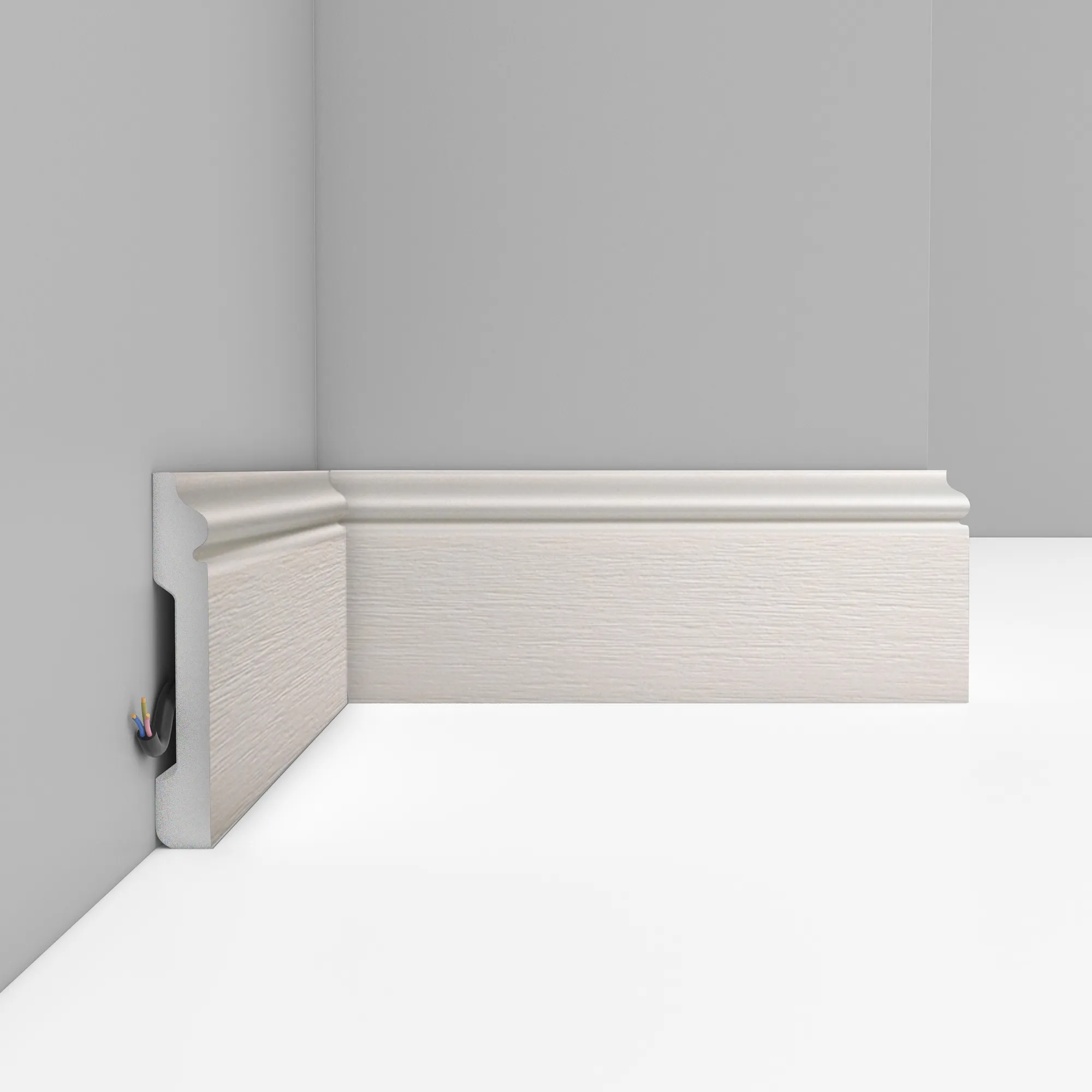 Окрашенный напольный плинтус D005-1070 ДМ Decomaster из дюрополимера, длина 2,40 м, ударопрочный, влагостойкий. Дюрополимер не содержит токсичных продуктов и со временем не дает усадку.