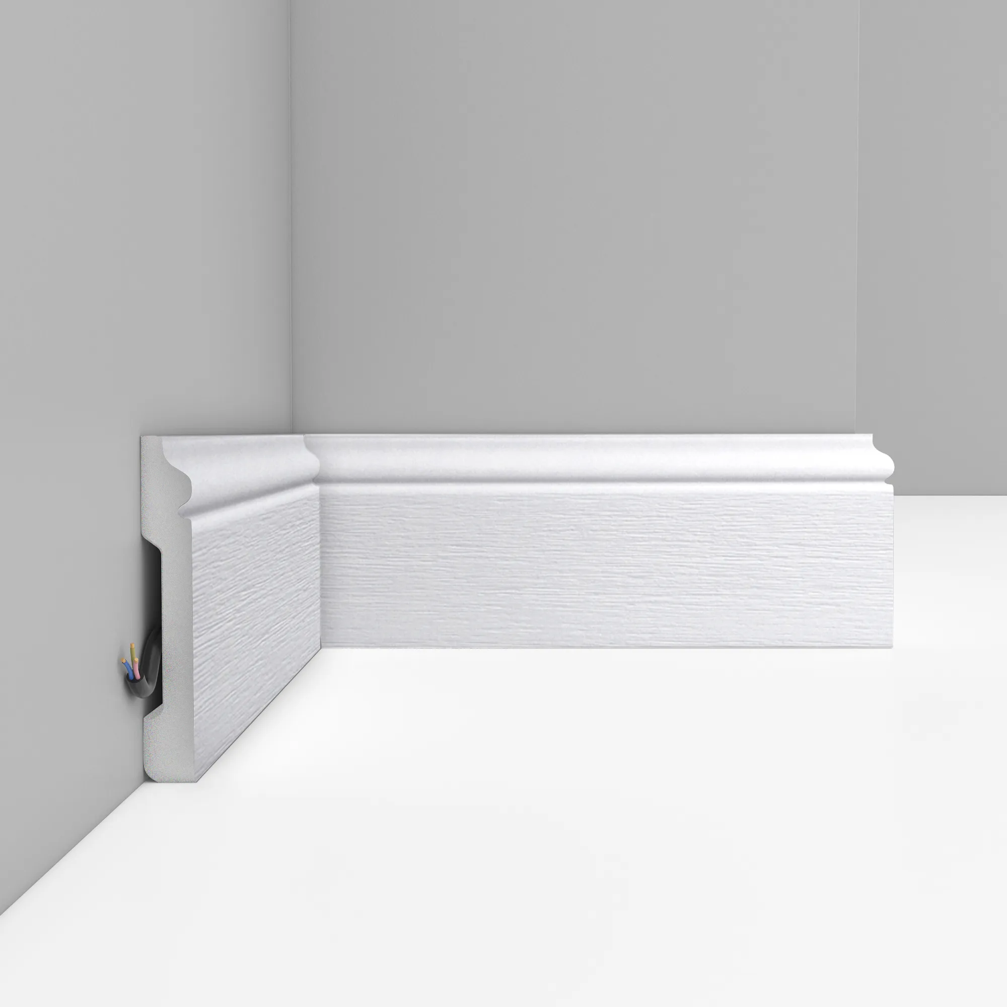 Окрашенный напольный плинтус D005-70 Decomaster из дюрополимера, длина 2,40 м, ударопрочный, влагостойкий. Дюрополимер не содержит токсичных продуктов и со временем не дает усадку.