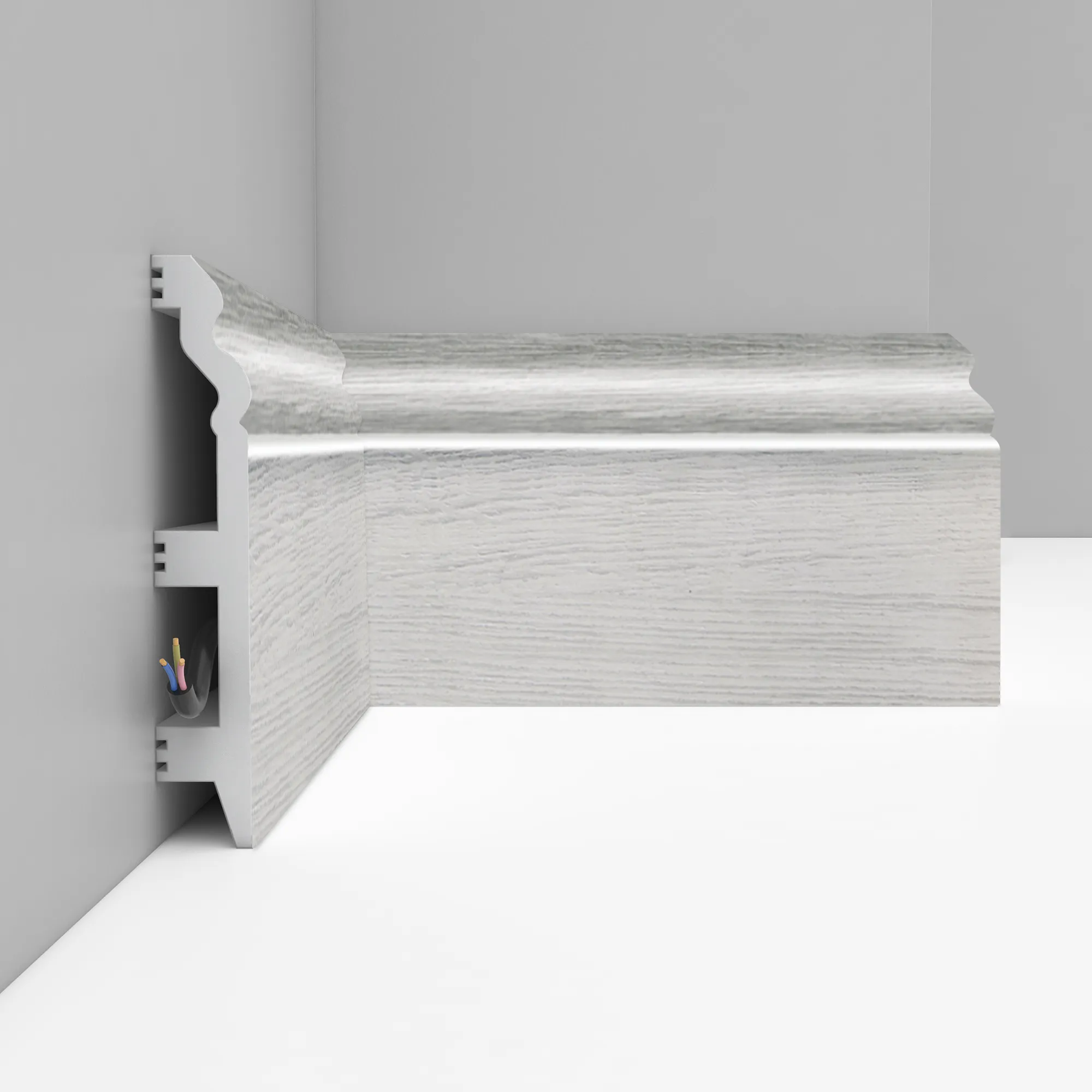 Окрашенный напольный плинтус D233-84 Decomaster из дюрополимера, длина 2,40 м, ударопрочный, влагостойкий. Дюрополимер не содержит токсичных продуктов и со временем не дает усадку.