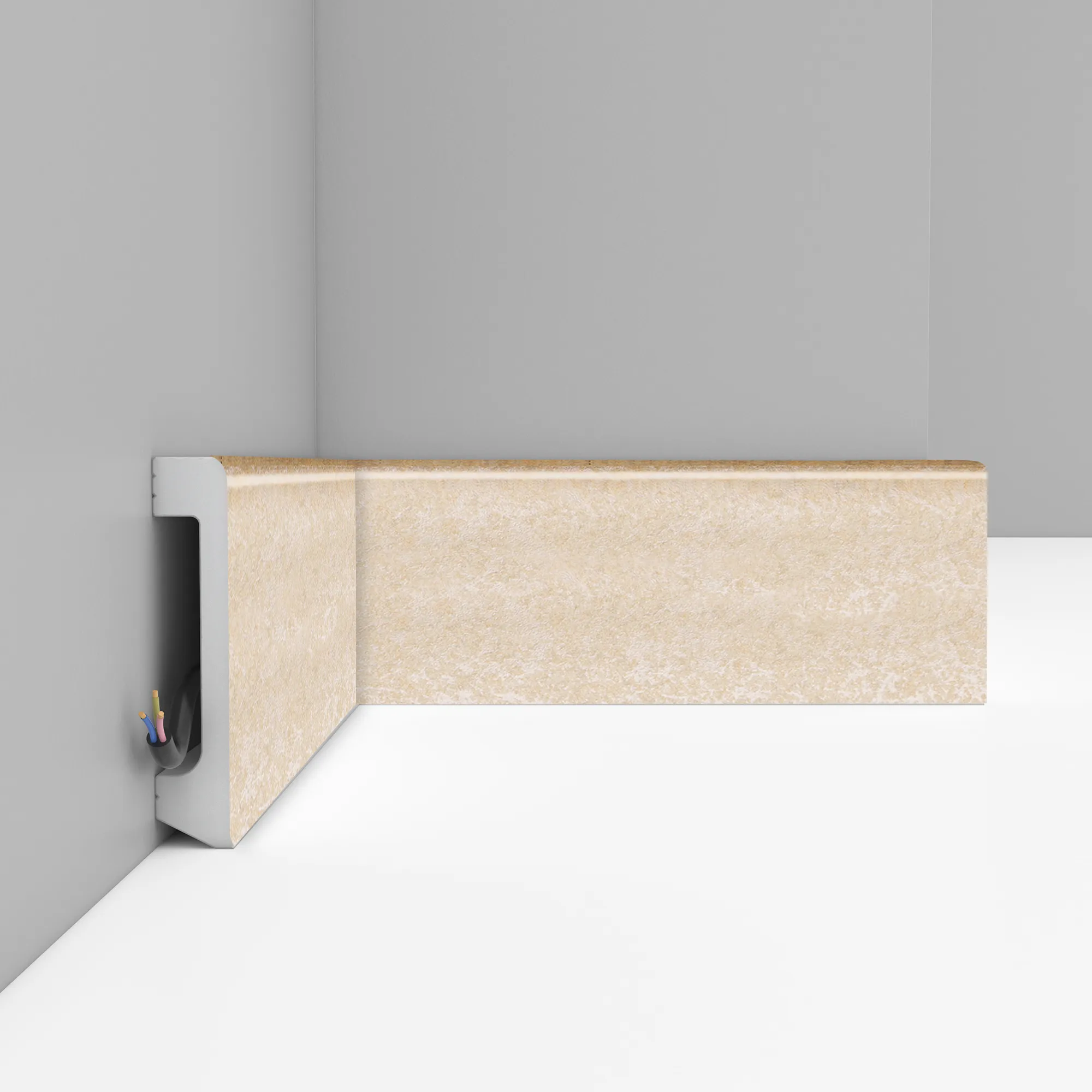 Окрашенный напольный плинтус D235-18D Decomaster из дюрополимера, длина 2,40 м, ударопрочный, влагостойкий. Дюрополимер не содержит токсичных продуктов и со временем не дает усадку.