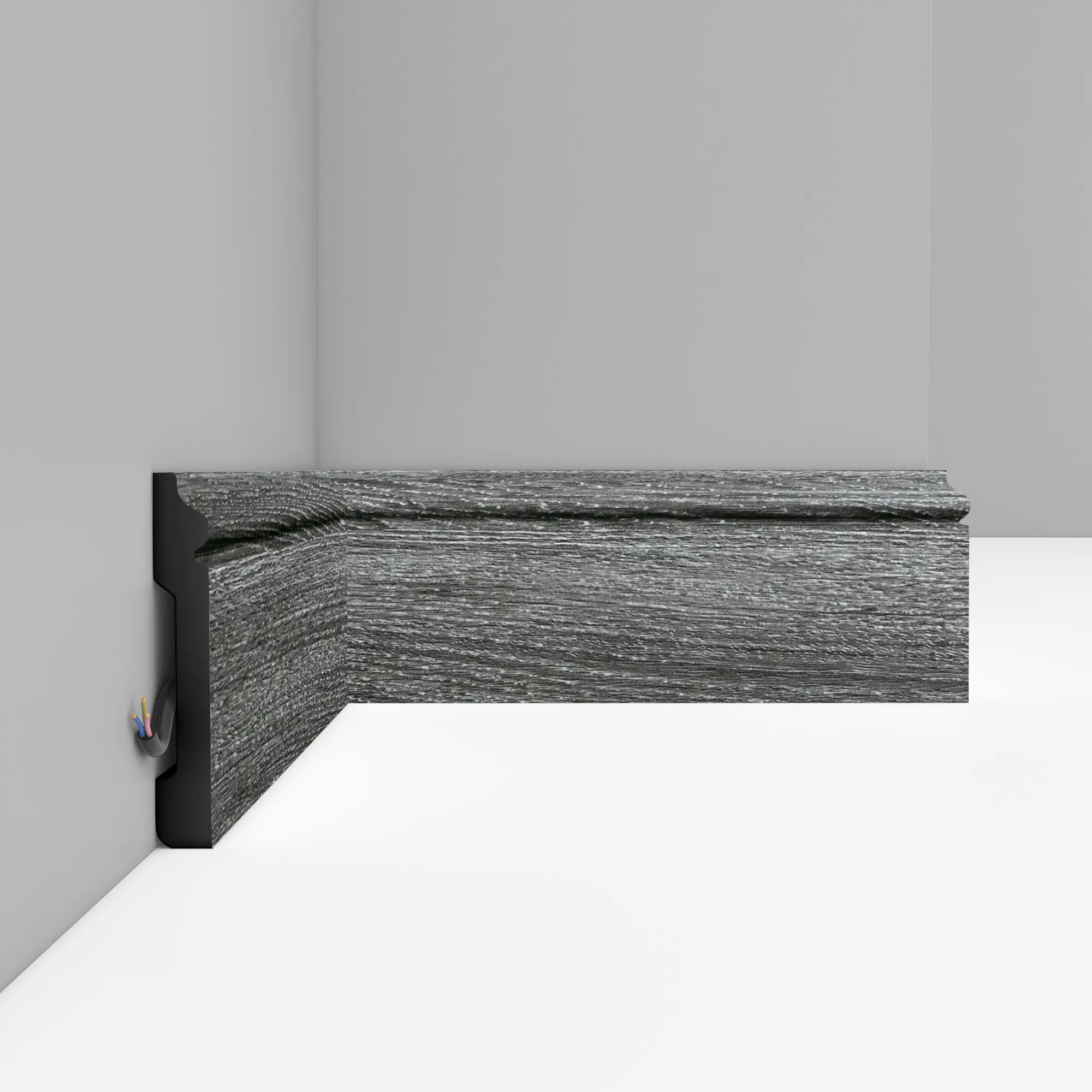 Окрашенный напольный плинтус D005-87 Decomaster из дюрополимера, длина 2,40 м, ударопрочный, влагостойкий. Дюрополимер не содержит токсичных продуктов и со временем не дает усадку.