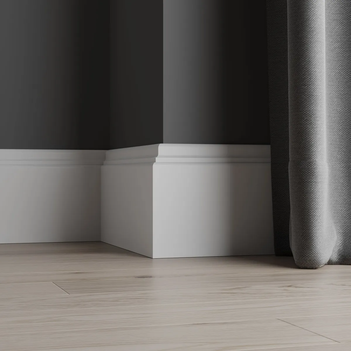 Плинтус является эффективным решением для отделки стыков между полом и стенами, придавая помещению утонченный и завершенный вид. Напольные плинтусы устойчивы к температурным колебаниям, что обеспечивает их долговечность и стабильность в использовании. Ударопрочный и износостойкий, простой в монтаже. Обладает хорошей адгезией и подходит для большинства типов красок.