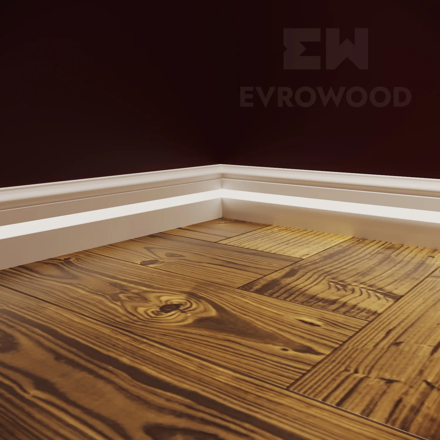Плинтус напольный МДФ Evrowood PN 040 LED для светодиодной ленты станет идеальным решением для обустройства скрытого освещения в помещениях любого типа.