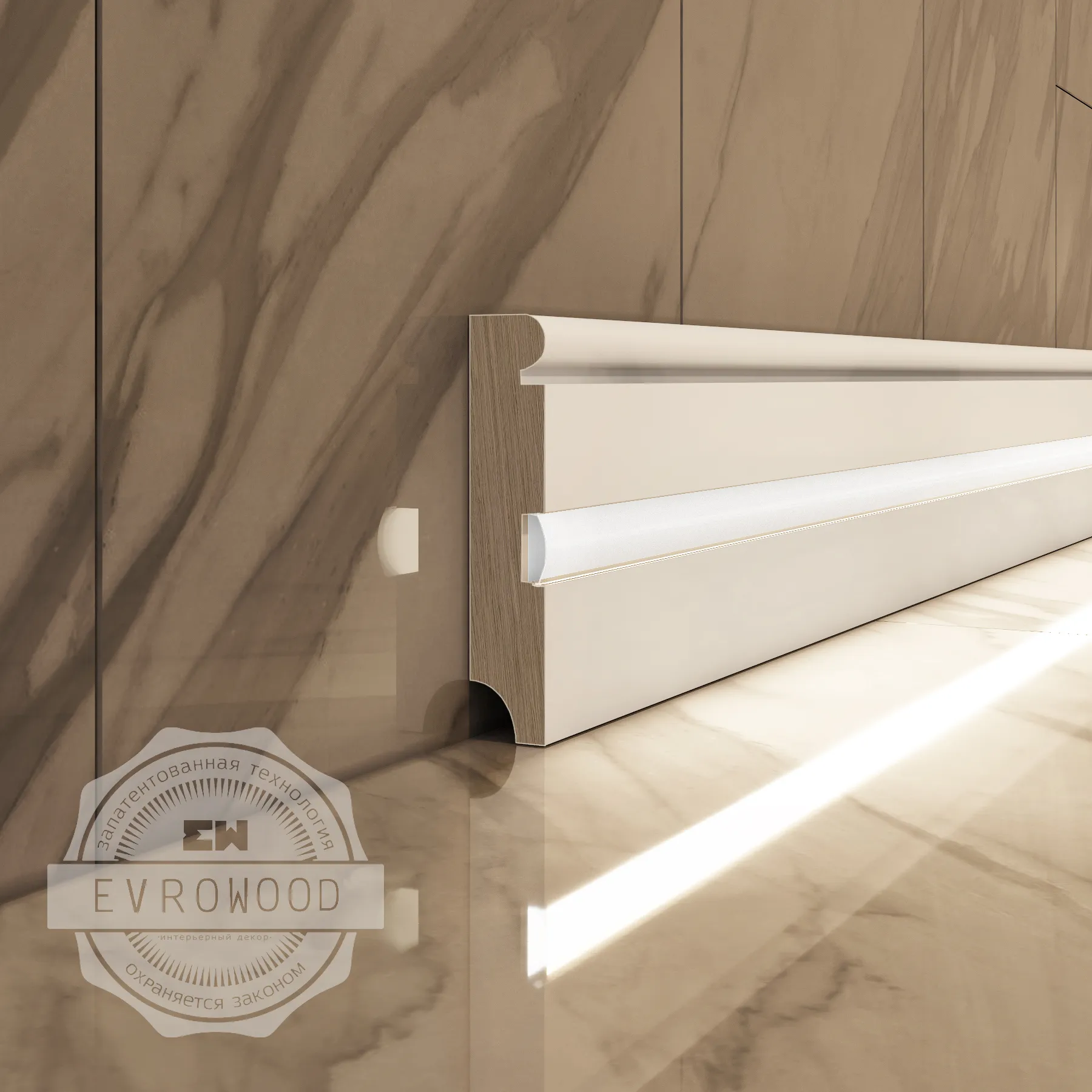Плинтус напольный МДФ Evrowood PN 030 LED для светодиодной ленты станет идеальным решением для обустройства скрытого освещения в помещениях любого типа.