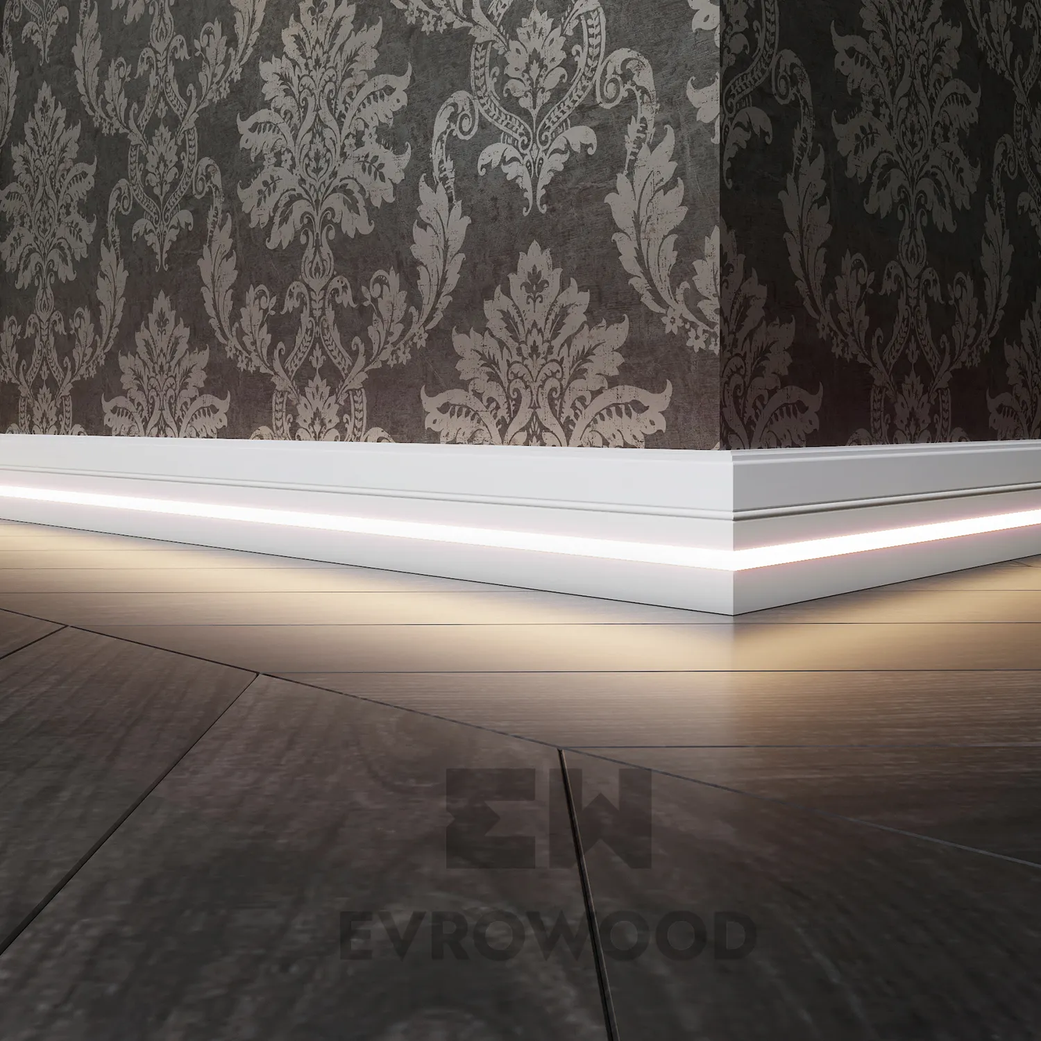 Плинтус напольный МДФ Evrowood PN 120 LED для светодиодной ленты станет идеальным решением для обустройства скрытого освещения в помещениях любого типа.