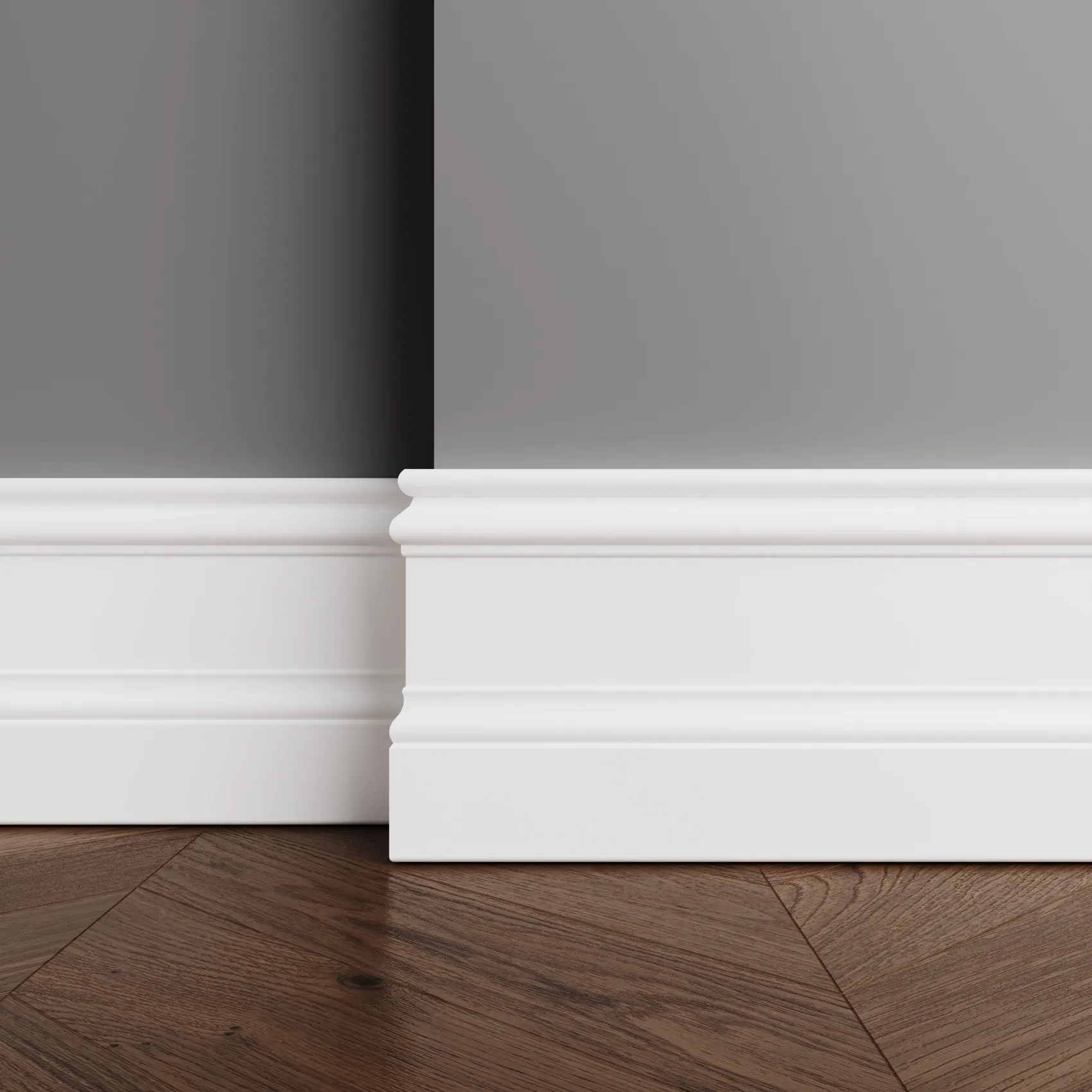 Плинтус является эффективным решением для отделки стыков между полом и стенами, придавая помещению утонченный и завершенный вид. Напольные плинтусы устойчивы к температурным колебаниям, что обеспечивает их долговечность и стабильность в использовании. Ударопрочный и износостойкий, простой в монтаже. Обладает хорошей адгезией и подходит для большинства типов красок.