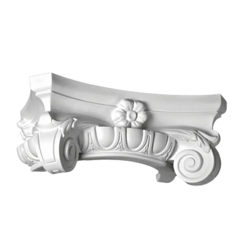 Капитель из полиуретана 1.15.003 Европласт это верхняя часть полуколонны может быть использована как отдельный элемент, так и в наборе таких декоративных элементов как ствол и база. Изящный дизайн является уникальным акцентом, придающим интерьеру аристократический вид. Преимуществами полиуретановых капителей являются легкость, прочность и возможность подбора различных дизайнов, что делает их идеальным выбором для создания роскошного и утонченного интерьера. Капители легко покрасить в различные оттенки, что позволяет создать уникальный дизайн, сочетающийся с индивидуальным стилем интерьера.