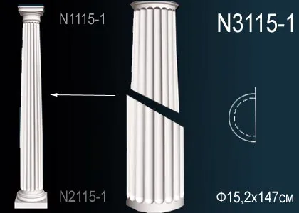 Ствол полуколонны N3115-1 из полиуретана производителя Перфект. Стволы могут быть использованы для придания интерьеру элегантности и изысканности, а также в качестве функционального украшения стен или других поверхностей. При склеивании двух частей вы можете обрамить в интерьере и экстерьере трубы, балки несущих конструкций преобразив в полноценную колонну.