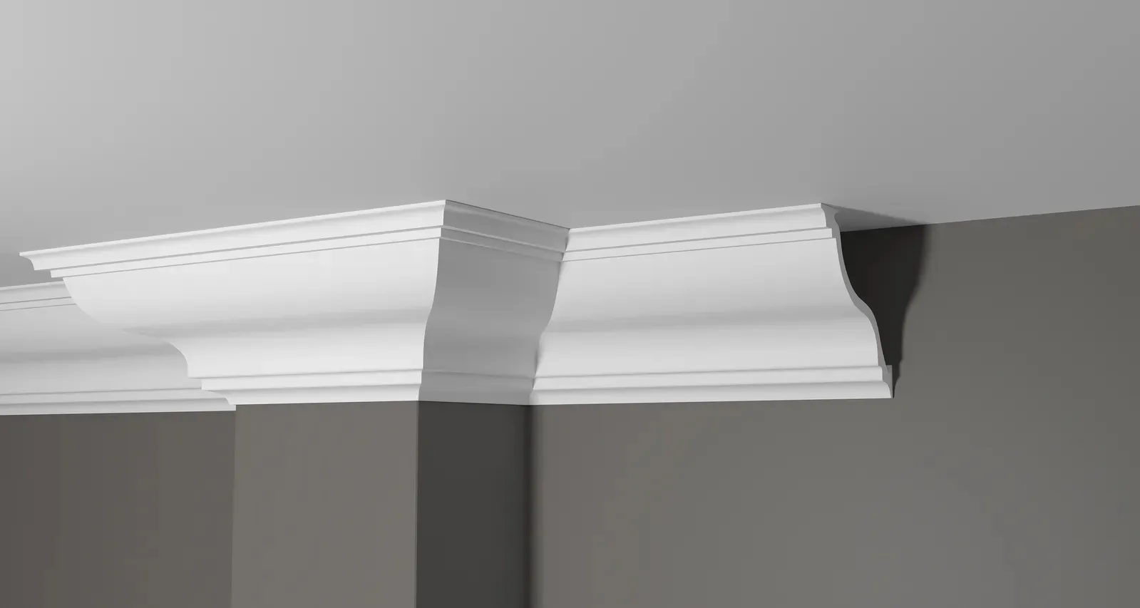 Потолочный карниз DD504 из дюрополимера он же ( экополимер, композит, фитополимер) ударопрочной, легкий в монтаже. Перед покрытием лакокрасочными материалами не содержащие растворители - рекомендовано про грунтовать. Дюрополимер не содержит токсичных продуктов и со временем не дает усадку.