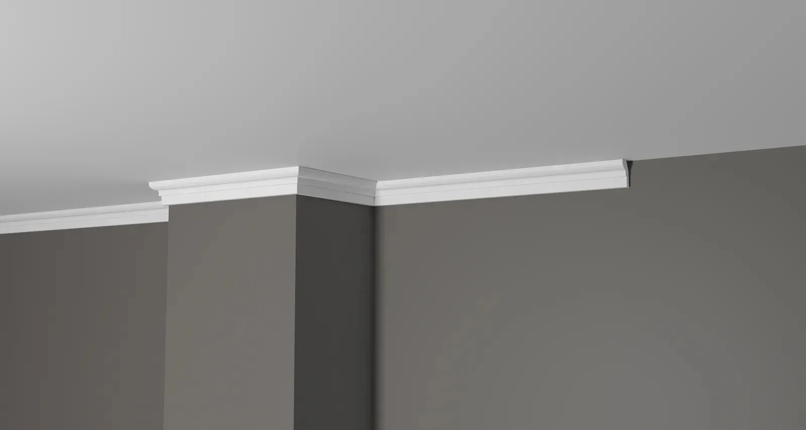 Потолочный карниз DD34 из дюрополимера он же ( экополимер, композит, фитополимер) ударопрочной, легкий в монтаже. Перед покрытием лакокрасочными материалами не содержащие растворители - рекомендовано про грунтовать. Дюрополимер не содержит токсичных продуктов и со временем не дает усадку.