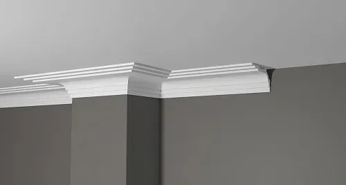Потолочный карниз DD515 из дюрополимера он же ( экополимер, композит, фитополимер) ударопрочной, легкий в монтаже. Перед покрытием лакокрасочными материалами не содержащие растворители - рекомендовано про грунтовать. Дюрополимер не содержит токсичных продуктов и со временем не дает усадку.