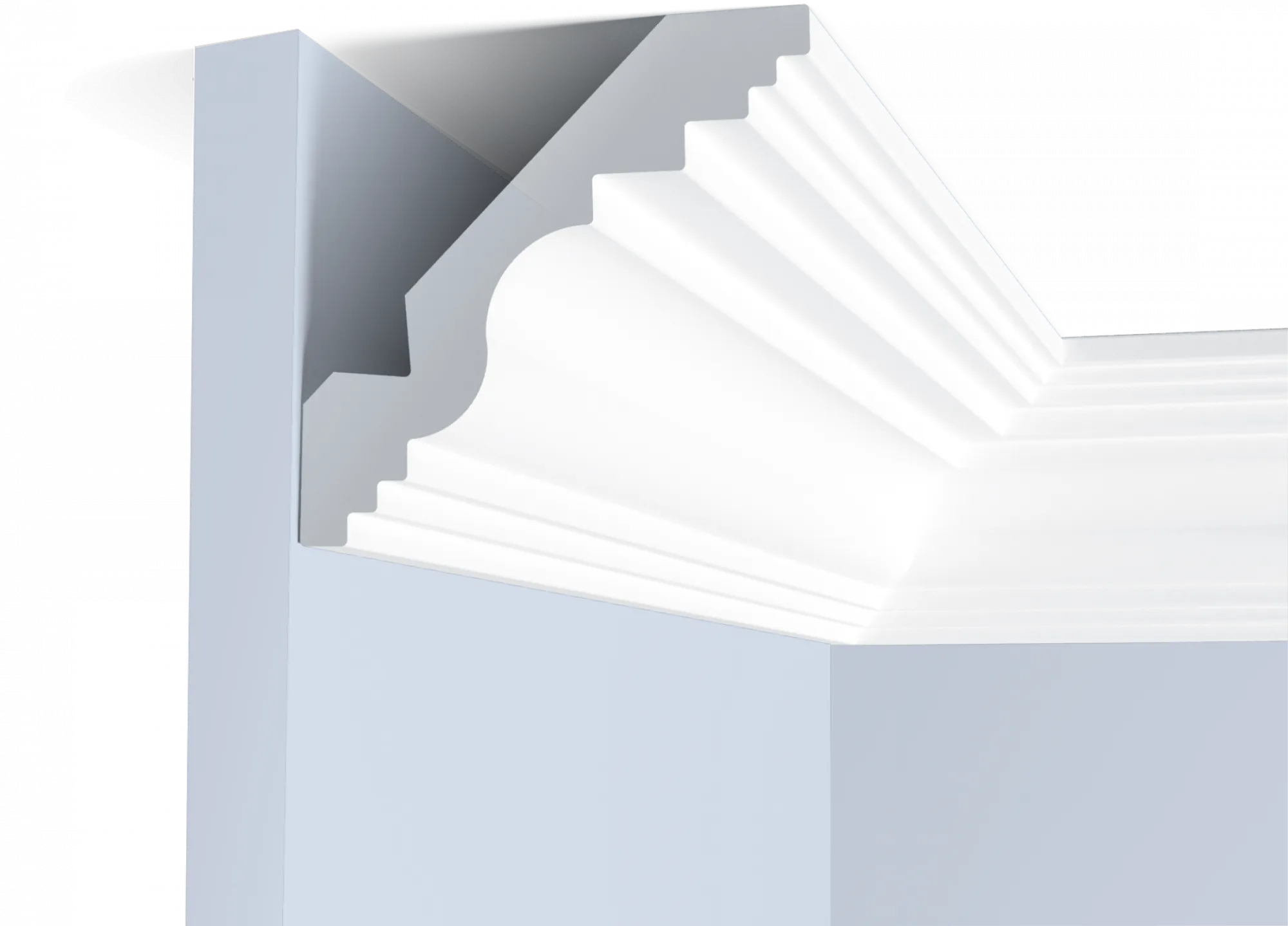 Легкость установки, устойчивость к влаге, что позволяет их монтировать во влажные помещения, ударопрочные, легко моются, являются отличной альтернативой полиуретановым или гипсовым карнизам.