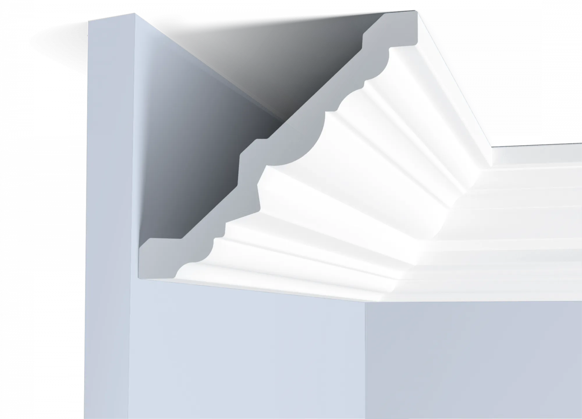 Легкость установки, устойчивость к влаге, что позволяет их монтировать во влажные помещения, ударопрочные, легко моются, являются отличной альтернативой полиуретановым или гипсовым карнизам.