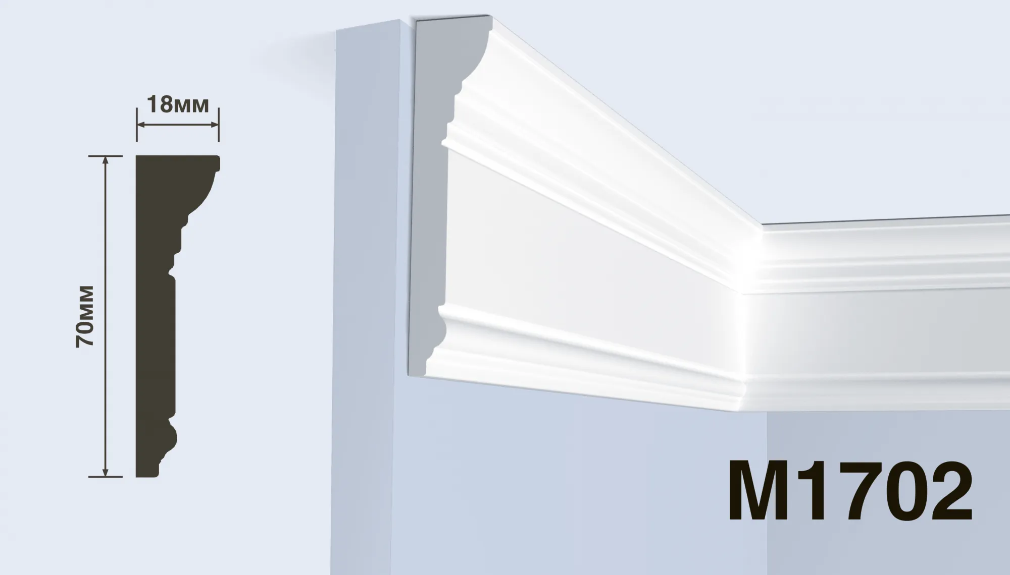 Потолочный карниз M1702 из фитополимера производителя HIWOOD. Карнизы устанавливаются на пересечении стены и потолка и служат как функциональным, так и эстетическим элементом в интерьере, придают комнате завершенный и изысканный вид.