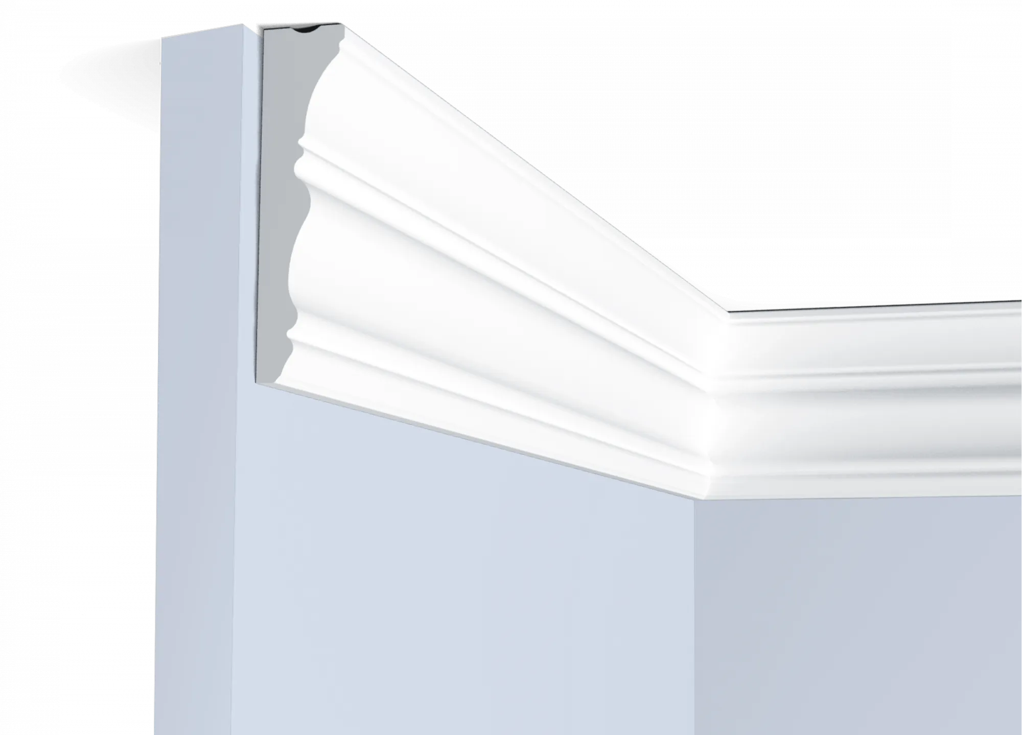 Легкость установки, устойчивость к влаге, что позволяет их монтировать во влажные помещения, ударопрочные, легко моются, являются отличной альтернативой полиуретановым или гипсовым карнизам.