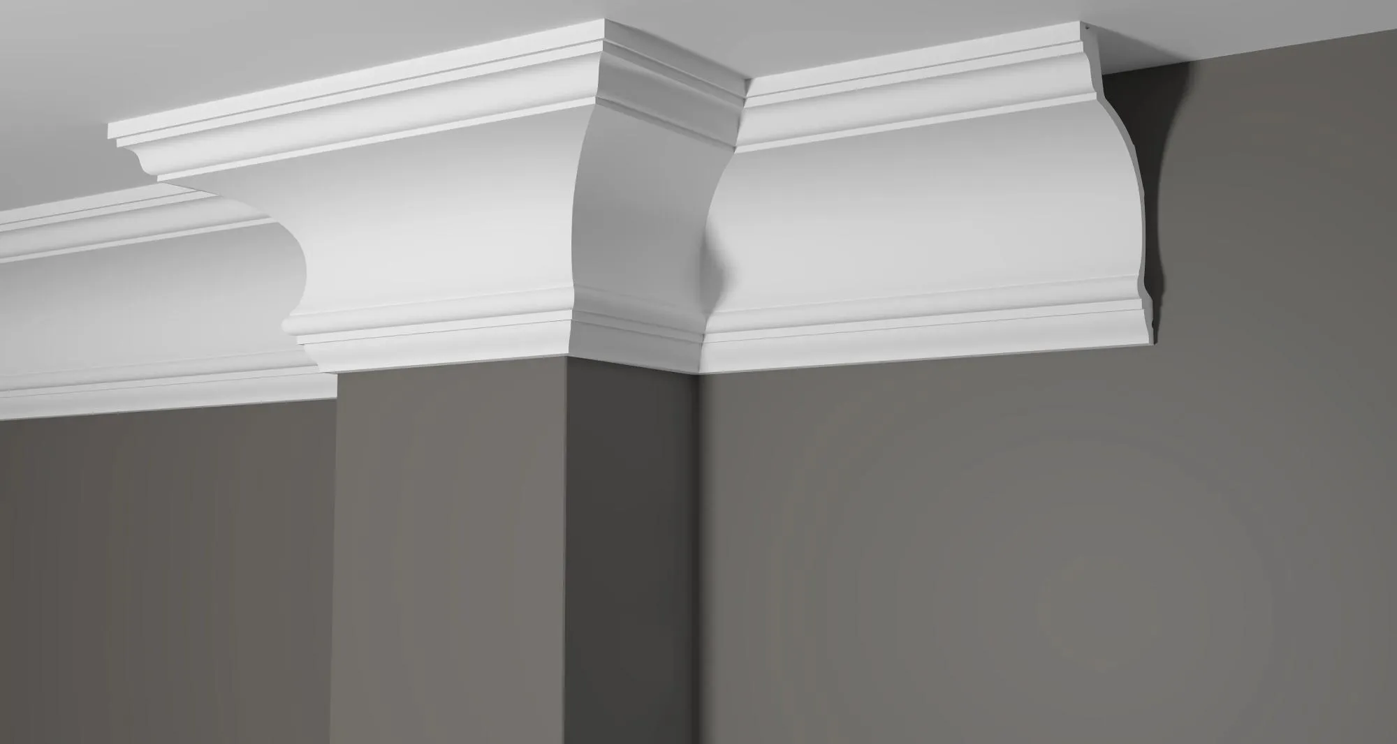 Потолочный карниз DD522 из дюрополимера он же ( экополимер, композит, фитополимер) ударопрочной, легкий в монтаже. Перед покрытием лакокрасочными материалами не содержащие растворители - рекомендовано про грунтовать.Дюрополимер не содержит токсичных продуктов и со временем не дает усадку.
