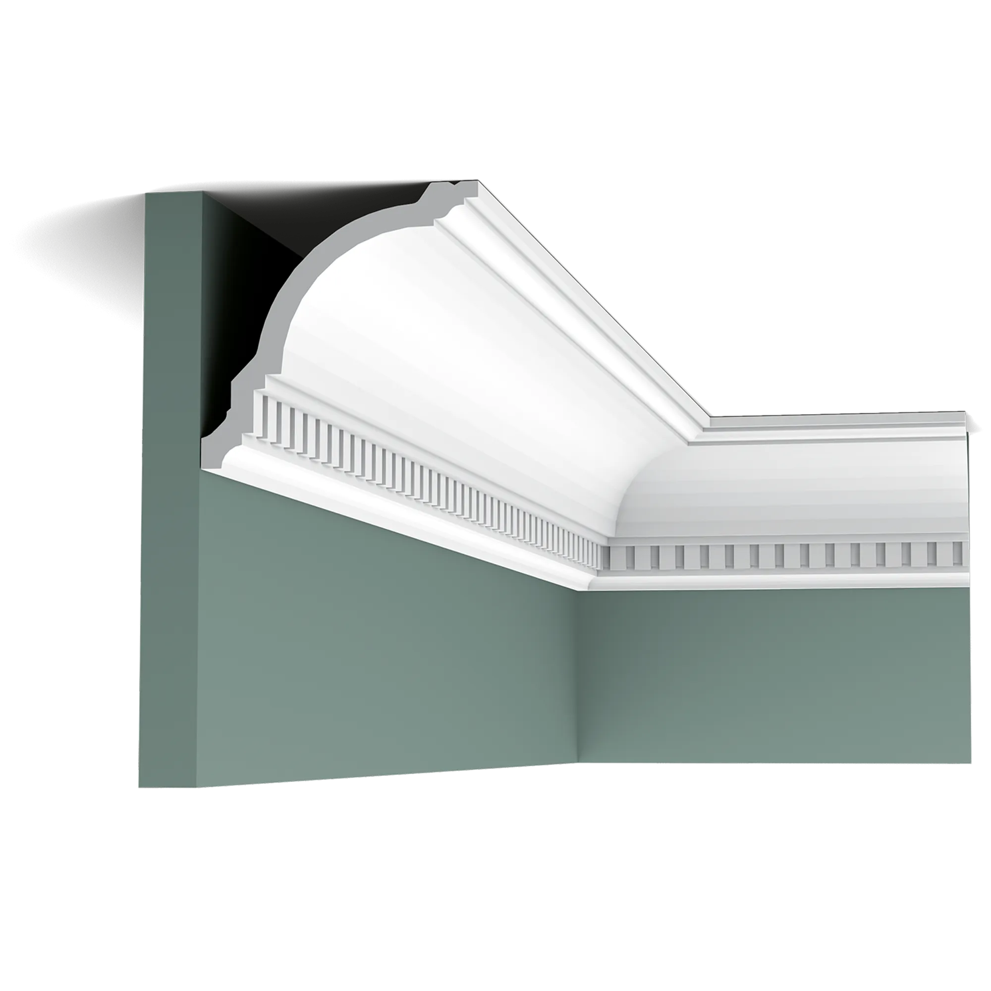 Потолочный карниз CX107 из дюрополимера Orac Decor. Карниз про грунтован, влагостойкий, устойчивый к термитам, легко монтируется, идеальная поверхность для окрашивания красками не содержащие растворитель. Рекомендуется использовать стыковочный клей для соединительных стыков.