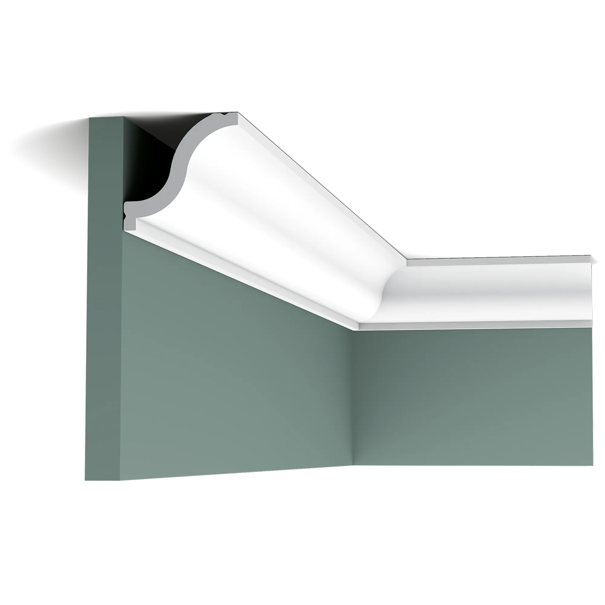 Потолочный карниз CX108 из дюрополимера Orac Decor. Карниз про грунтован, влагостойкий, устойчивый к термитам, легко монтируется, идеальная поверхность для окрашивания красками не содержащие растворитель. Рекомендуется использовать стыковочный клей для соединительных стыков.