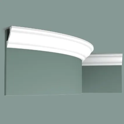 Гибкая версия CX110 Классический карниз создает деликатный переход между стеной и потолком. Круглые стены или изогнутые поверхности не представляют никакой трудности для технологии Flex. Примечания: Используйте DecoFix Pro или DecoFix Power. Для крепления к стене должны использоваться шурупы. Flex Radius: R min = 180 cm