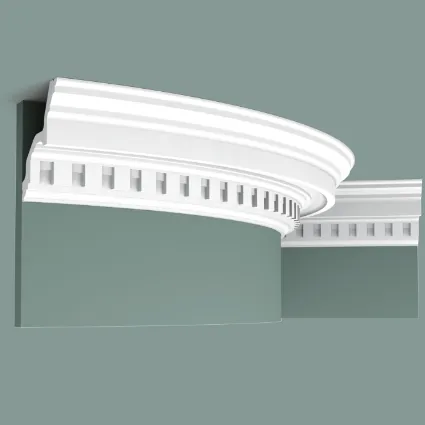 Гибкая версия C211. Этот величественный карниз с зубчатыми блоками подчеркнет индивидуальность вашего интерьера. Круглые стены или изогнутые поверхности не представляют никакой трудности для технологии Flex. Обязательно обратите внимание на модель C422, используйте комбинации с моделью C305 для придания вашему интерьеру еще большей величественности. Примечания: Используйте DecoFix Pro или DecoFix Power. Для крепления к стене должны использоваться шурупы. Flex Radius: R min = 250 cm