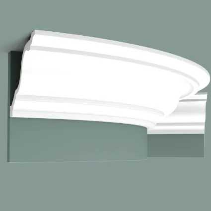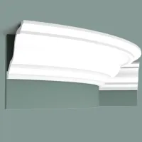 Гибкая версия C334. Элегантный классический карниз в виде гусиной шеи. Круглые стены или изогнутые поверхности не представляют никакой трудности для технологии Flex. Примечания: Используйте DecoFix Power. Для крепления к стене должны использоваться шурупы. Flex Radius: R min = 380 cm