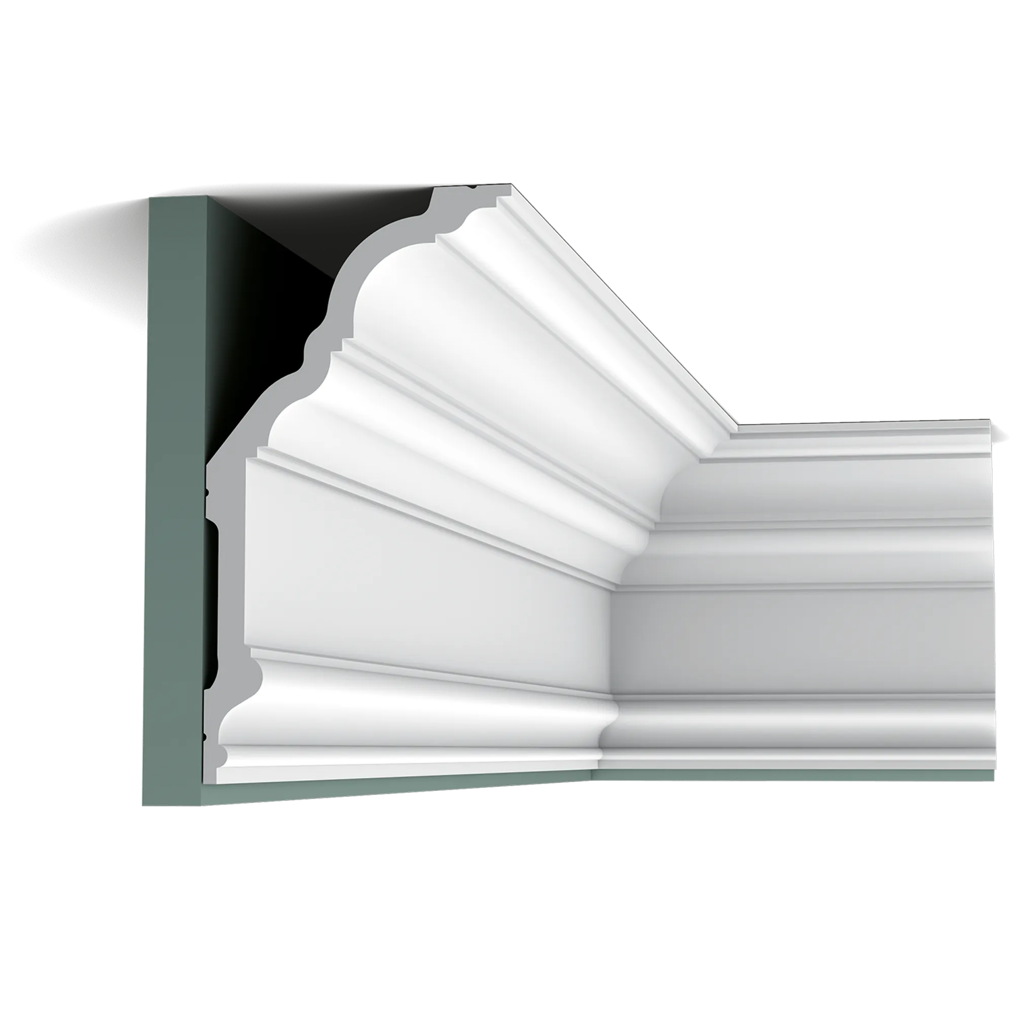 Дизайн этой большой модели Cotswold позволяет разместить карниз двумя способами. Здесь мы разместили самую длинную сторону карниза на стене, чтобы зрительно приподнять потолок.