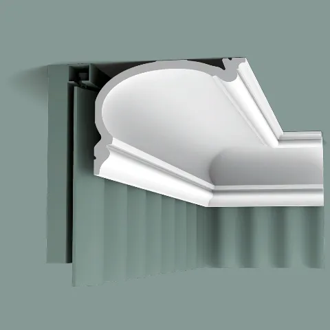 Благодаря дополнительной клейкой стороне этот классический карниз также может использоваться как каркас для штор. Он позволяет спрятать беговые рельсы штор на завершающей стадии отделки. Примечания: Используйте ультра сильный DecoFix Power для установки массивных карнизов для штор.
