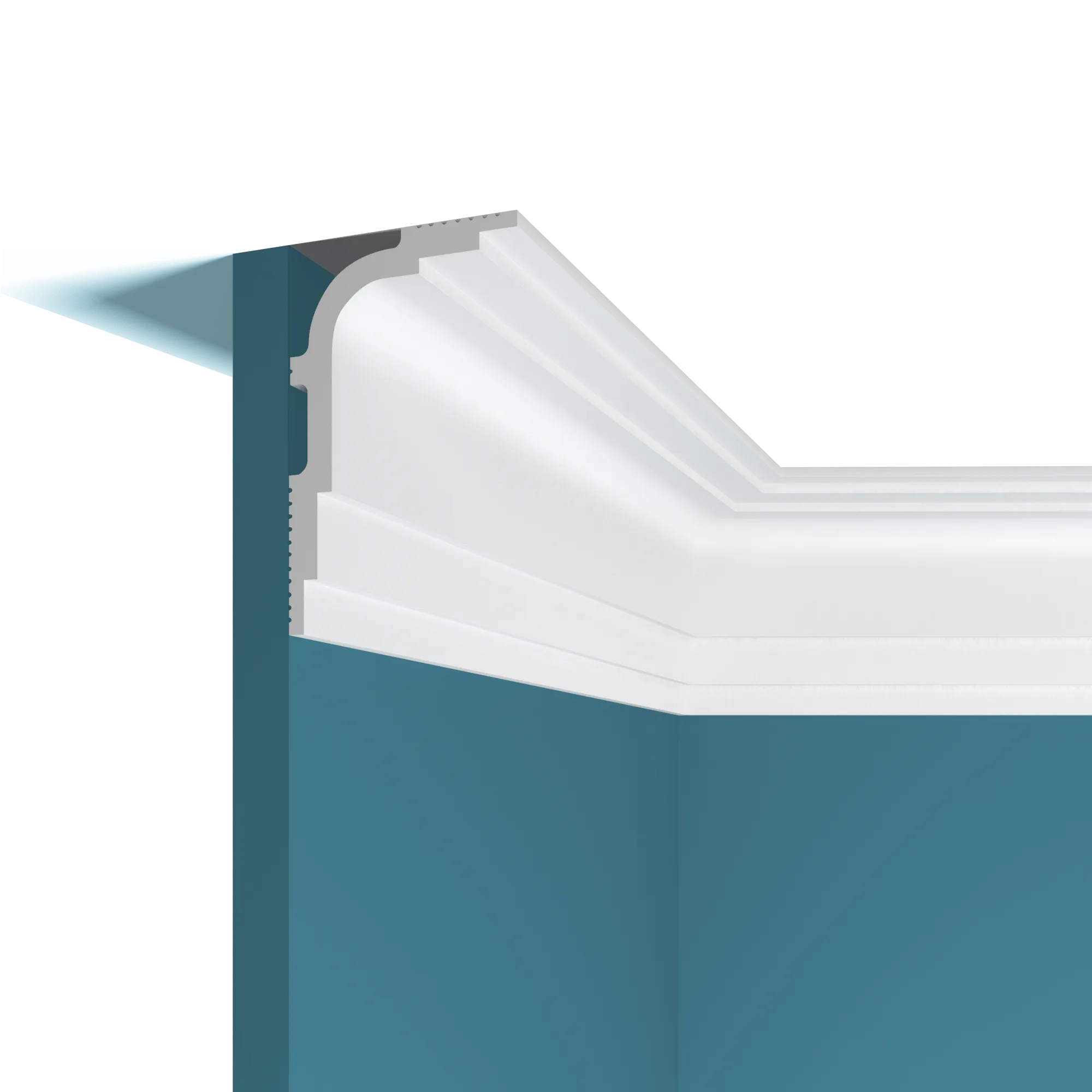 Потолочный карниз Р102 из коллекции перфект plus. Материал дюрополимер он же ( экополимер, композит, фитополимер). Дюрополимер обладает высокой твердостью, прочности не поглощает влагу, что позволяет использование в ванных комнатах и саун. Перед покрытием лакокрасочными материалами не содержащие растворители - рекомендовано про грунтовать. Рекомендуется использовать стыковочный клей для соединительных стыков.