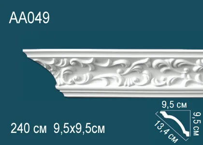 Карниз AA095 с орнаментом из полиуретана компании Перфект. Материал высокой прочности, гибкости, водонепроницаемого, стойкого к перепадам температур и воздействию света, что позволяет монтировать не только в сухих, но и влажных помещениях. Для монтажа карнизов рекомендуется использование монтажного и стыковочного клея во избежание расхождения швов. Перед покраской рекомендуем прогрунтовать изделия для лучшего окрашивания лакокрасочными материалами не содержащие растворителей.Есть гибкий аналог.