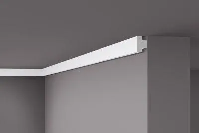 Потолочный карниз T40 из дюрополимера, бельгийского производителя nmc. Карниз легко монтируется, про грунтован имеет идеальную поверхность для окрашивания красками не содержащие растворитель,также можно использовать в качестве молдинга на стены.