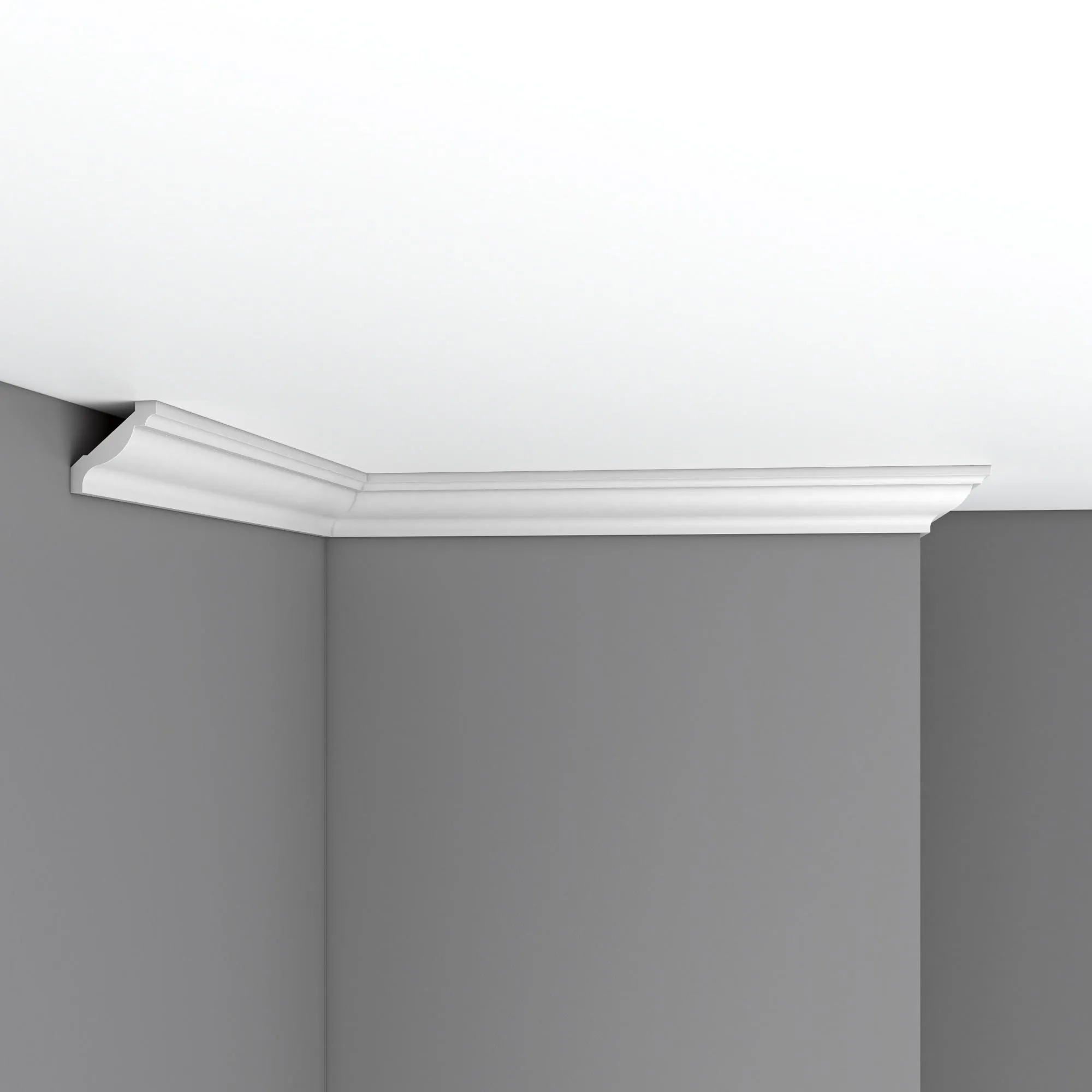 Потолочный карниз из полиуретана 96015 Decomaster. Карнизы используются для придания потолку завершенного вида, для скрытия швов между стеной и потолком добавляя изысканности и стиля в интерьер помещения. Полиуретановые карнизы устойчивы к воздействию влаги, в отличие от некоторых других материалов, что делает их подходящими для использования в ванных комнатах или кухнях.