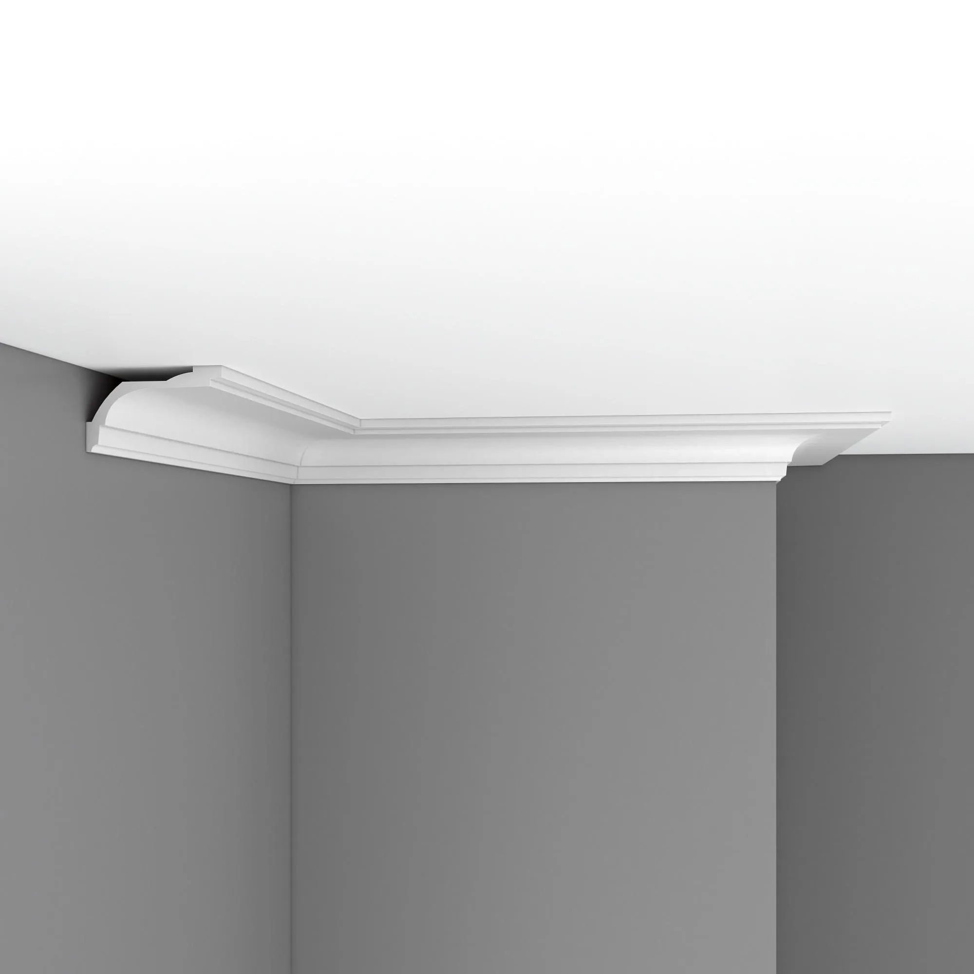 Потолочный карниз из полиуретана 96220 Decomaster. Карнизы используются для придания потолку завершенного вида, для скрытия швов между стеной и потолком добавляя изысканности и стиля в интерьер помещения. Полиуретановые карнизы устойчивы к воздействию влаги, в отличие от некоторых других материалов, что делает их подходящими для использования в ванных комнатах или кухнях.