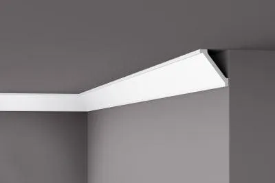 Потолочный карниз WT2 из дюрополимера, бельгийского производителя nmc. Карниз легко монтируется, про грунтован имеет идеальную поверхность для окрашивания красками не содержащие растворитель.