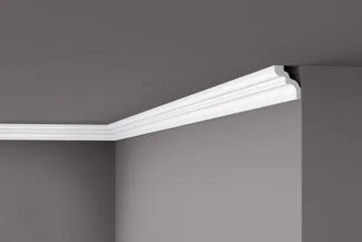 Потолочный карниз WT9 из дюрополимера, бельгийского производителя nmc. Карниз легко монтируется, про грунтован имеет идеальную поверхность для окрашивания красками не содержащие растворитель.