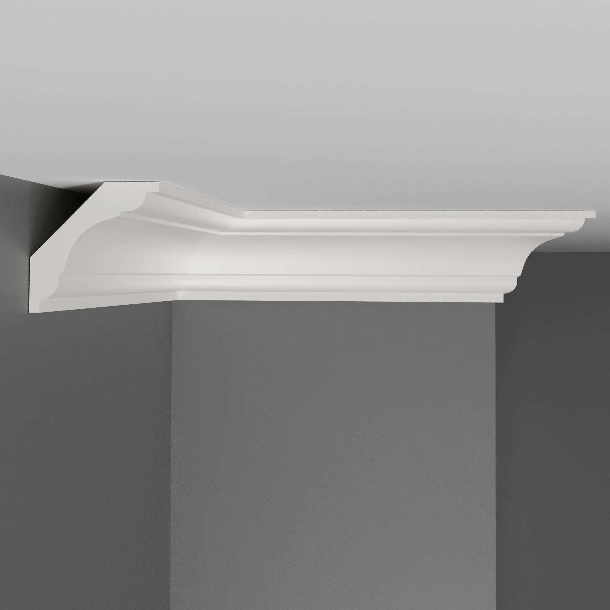 Потолочный карниз D124 Decomaster из дюрополимера он же (экополимер, композит, фитополимер) ударопрочной, легкий в монтаже, готов к покраске лакокрасочными материалами не содержащие растворитель. Дюрополимер не содержит токсичных продуктов и со временем не дает усадку. Рекомендуется использовать стыковочный клей для соединительных стыков.