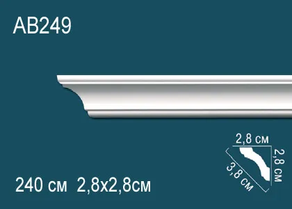 Карниз AB 249 с гладким профилем из полиуретана компании Перфект. Материал высокой прочности, гибкости, водонепроницаемого, стойкого к перепадам температур и воздействию света, что позволяет монтировать не только в сухих, но и влажных помещениях. Для монтажа карнизов рекомендуется использование монтажного и стыковочного клея во избежание расхождения швов. Перед покраской рекомендуем прогрунтовать изделия для лучшего окрашивания лакокрасочными материалами не содержащие растворителей.