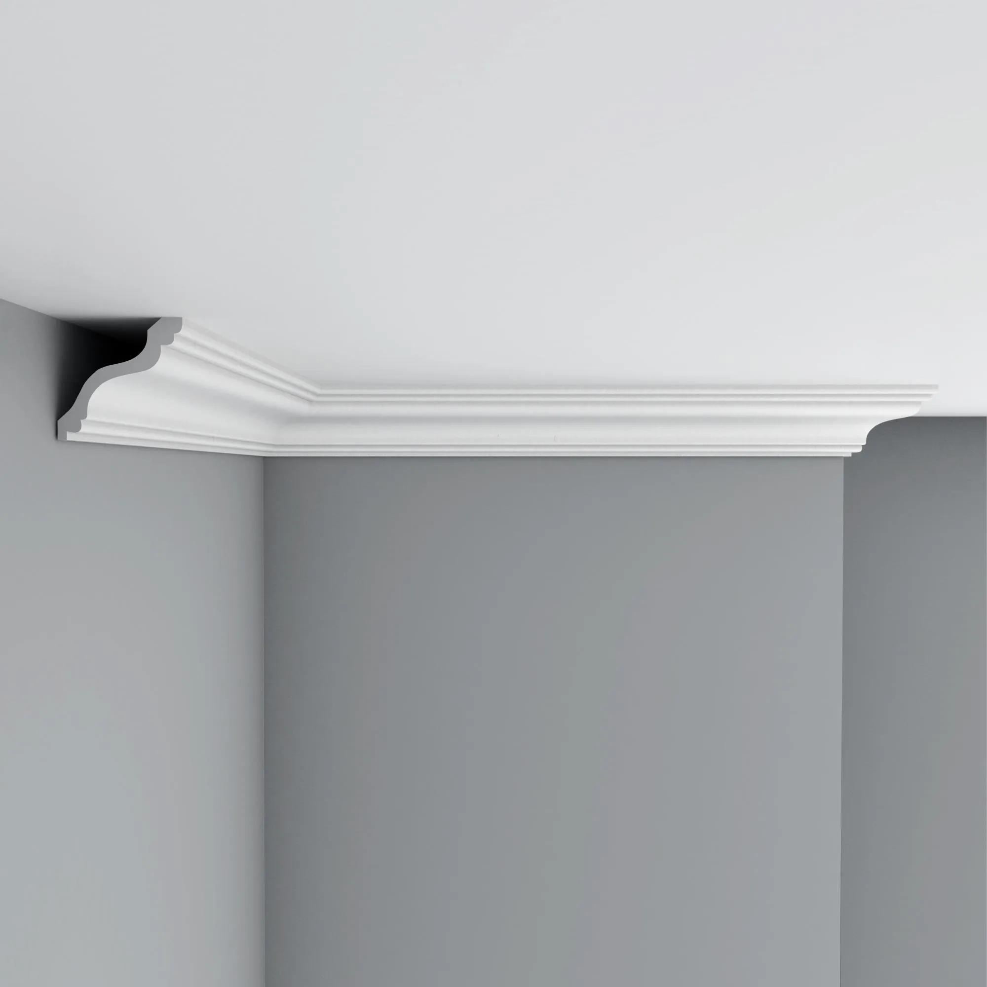 Потолочный карниз из полиуретана 96514 Decomaster. Карнизы используются для придания потолку завершенного вида, для скрытия швов между стеной и потолком добавляя изысканности и стиля в интерьер помещения. Полиуретановые карнизы устойчивы к воздействию влаги, в отличие от некоторых других материалов, что делает их подходящими для использования в ванных комнатах или кухнях.