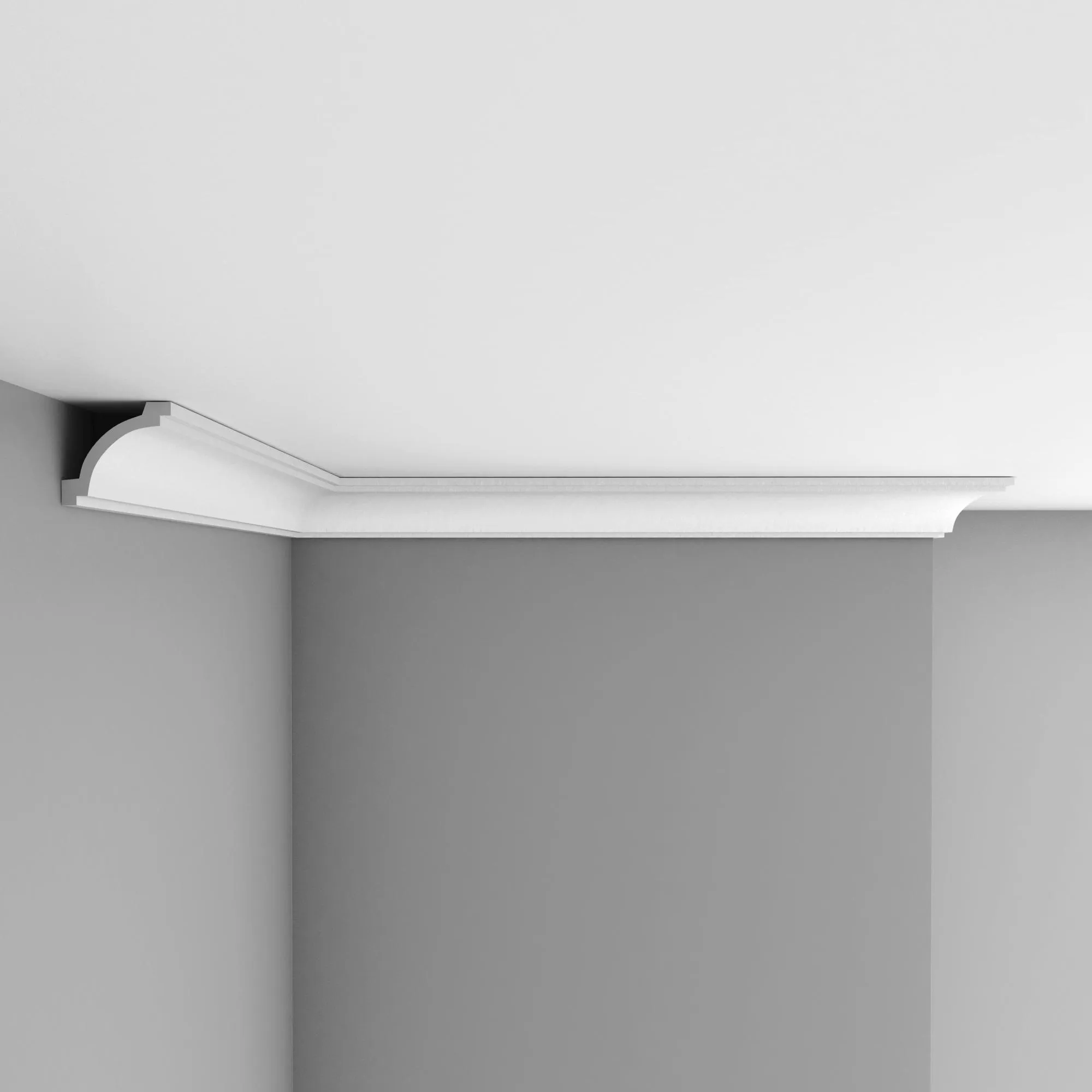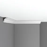 Потолочный карниз из полиуретана 96516 Decomaster. Карнизы используются для придания потолку завершенного вида, для скрытия швов между стеной и потолком добавляя изысканности и стиля в интерьер помещения. Полиуретановые карнизы устойчивы к воздействию влаги, в отличие от некоторых других материалов, что делает их подходящими для использования в ванных комнатах или кухнях.