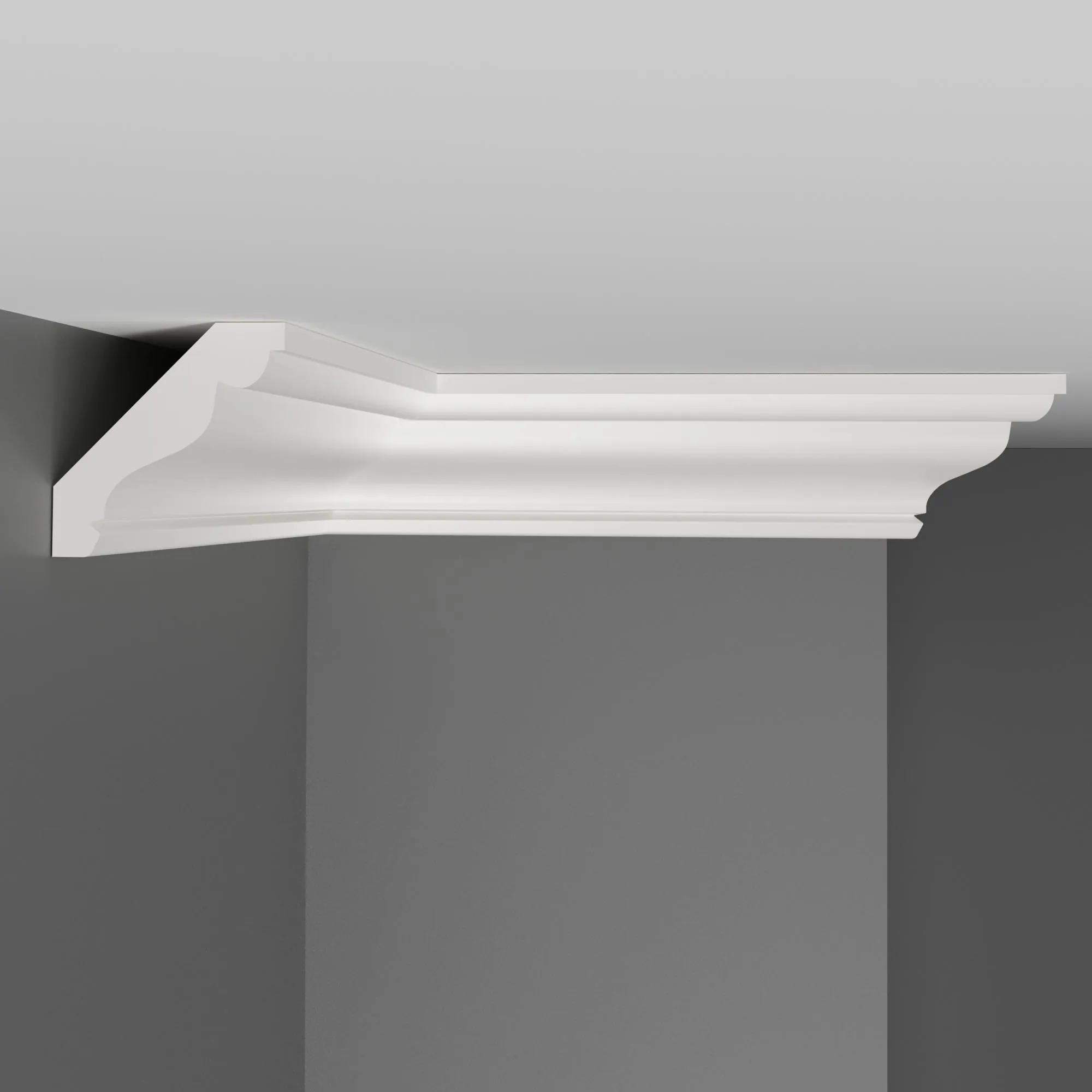 Потолочный карниз D155 Decomaster из дюрополимера он же (экополимер, композит, фитополимер) ударопрочной, легкий в монтаже, готов к покраске лакокрасочными материалами не содержащие растворитель. Дюрополимер не содержит токсичных продуктов и со временем не дает усадку. Рекомендуется использовать стыковочный клей для соединительных стыков.