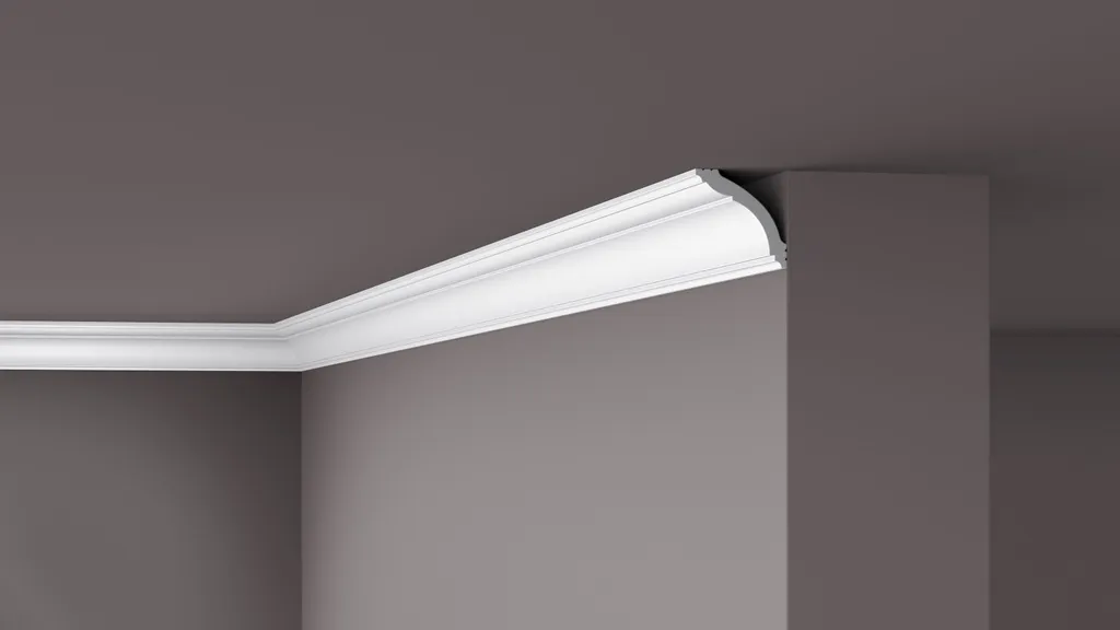 Потолочный карниз WT15 из дюрополимера, бельгийского производителя nmc. Карниз легко монтируется, про грунтован имеет идеальную поверхность для окрашивания красками не содержащие растворитель.