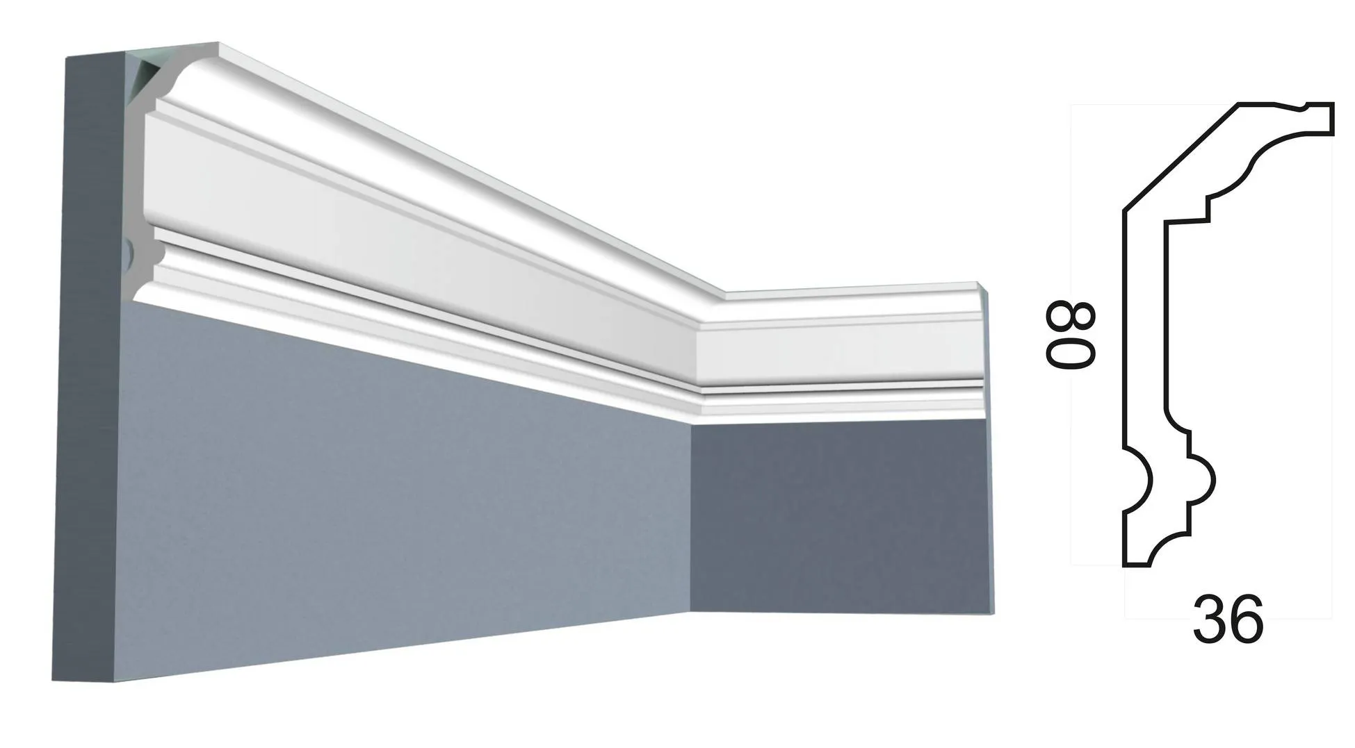 Потолочный карниз Kr336K PAOLO ARTE из дюрополимера. Карниз про грунтован, влагостойкий, устойчивый к термитам, легко монтируется, идеальная поверхность для окрашивания красками не содержащие растворитель. Рекомендуется использовать стыковочный клей для соединительных стыков.