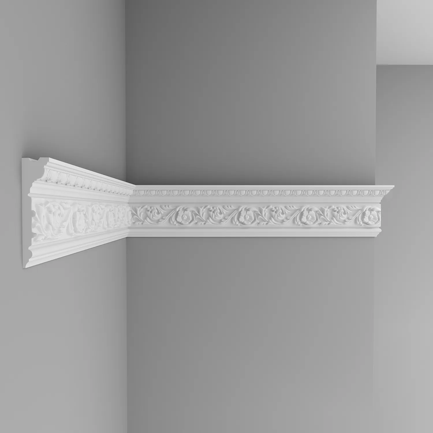 Потолочный карниз D225A Decomaster из дюрополимера он же (экополимер, композит, фитополимер) ударопрочной, легкий в монтаже, готов к покраске лакокрасочными материалами не содержащие растворитель. Дюрополимер не содержит токсичных продуктов и со временем не дает усадку. Рекомендуется использовать стыковочный клей для соединительных стыков. Можно использовать в интерьере как молдинг.