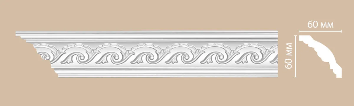 Потолочный карниз из полиуретана 95610 Decomaster. Карнизы используются для придания потолку завершенного вида, для скрытия швов между стеной и потолком добавляя изысканности и стиля в интерьер помещения. Полиуретановые карнизы устойчивы к воздействию влаги, в отличие от некоторых других материалов, что делает их подходящими для использования в ванных комнатах или кухнях.