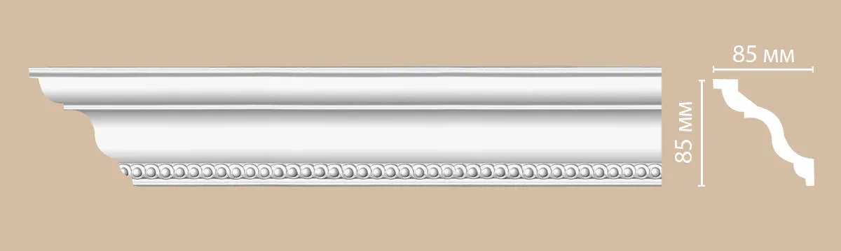 Потолочный карниз из полиуретана 95684 Decomaster. Карнизы используются для придания потолку завершенного вида, для скрытия швов между стеной и потолком добавляя изысканности и стиля в интерьер помещения. Полиуретановые карнизы устойчивы к воздействию влаги, в отличие от некоторых других материалов, что делает их подходящими для использования в ванных комнатах или кухнях.