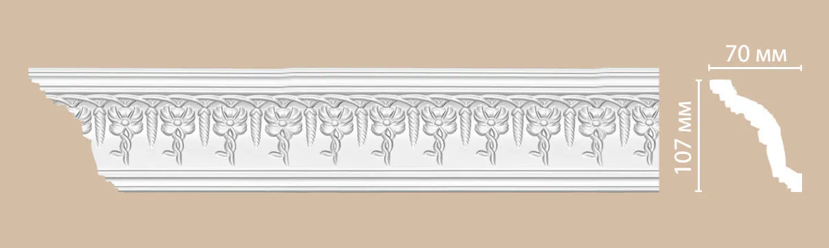 Потолочный карниз из полиуретана 95696 Decomaster. Карнизы используются для придания потолку завершенного вида, для скрытия швов между стеной и потолком добавляя изысканности и стиля в интерьер помещения. Полиуретановые карнизы устойчивы к воздействию влаги, в отличие от некоторых других материалов, что делает их подходящими для использования в ванных комнатах или кухнях.