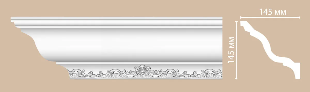 Потолочный карниз из полиуретана 95697 Decomaster. Карнизы используются для придания потолку завершенного вида, для скрытия швов между стеной и потолком добавляя изысканности и стиля в интерьер помещения. Полиуретановые карнизы устойчивы к воздействию влаги, в отличие от некоторых других материалов, что делает их подходящими для использования в ванных комнатах или кухнях.